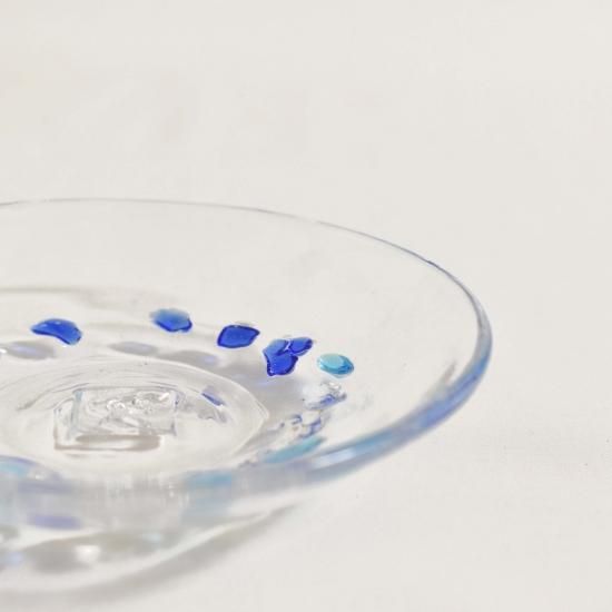 カレットとは、簡単に言うとガラスの破片のことですが、匠工房で使用されるカレットは割れたりケガ等しないよう、色やサイズも含めうまく琉球ガラスに融合するようなカレットを使用するため、使用するカレットも特殊です。そんなカレットを使用してグラスやお皿を作品として制作しています。かわいいカレット付グラスやお皿をお好みのカラーでお楽しみ下さい。